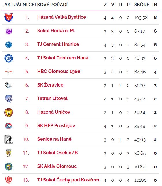 - 21.10.2023 16:45 Házená Velká Bystřice - TJ Sokol Čechy pod Kosířem 39:11
