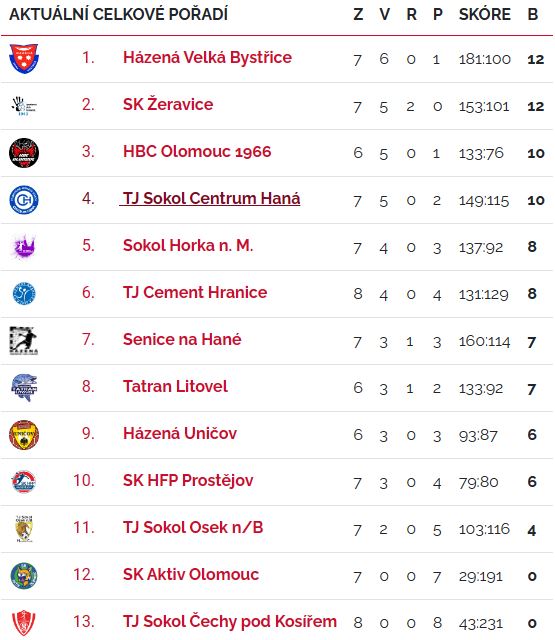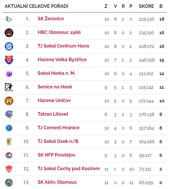 - 18.11.2023 14:45 SK Žeravice - SK Aktiv Olomouc 28:9