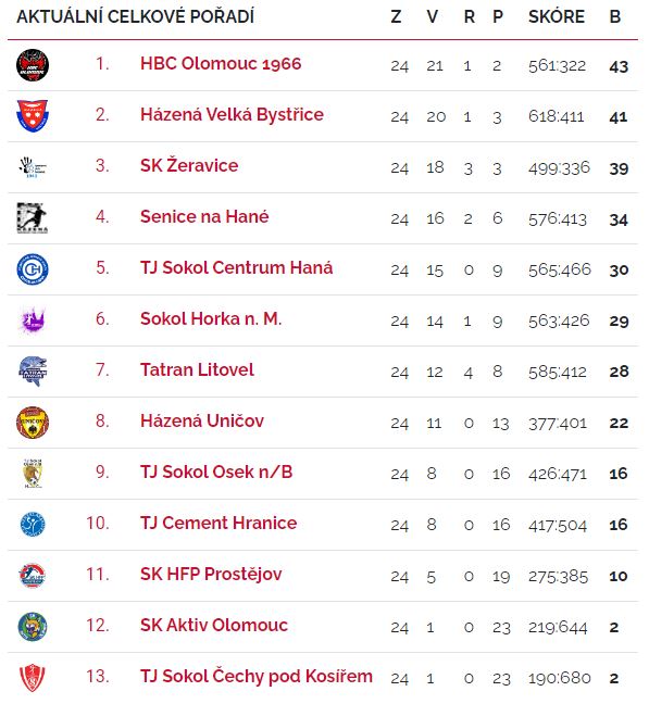 - 4.5.2024 12:00 HBC Olomouc 1966 - TJ Sokol Osek n/B 28:16