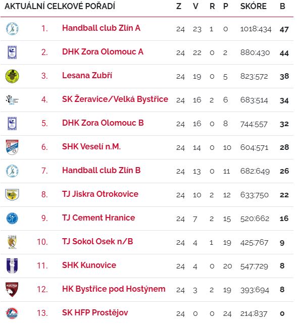 - 23.11.2024 12:00 DHK Zora Olomouc A - TJ Sokol Osek n/B 42:3